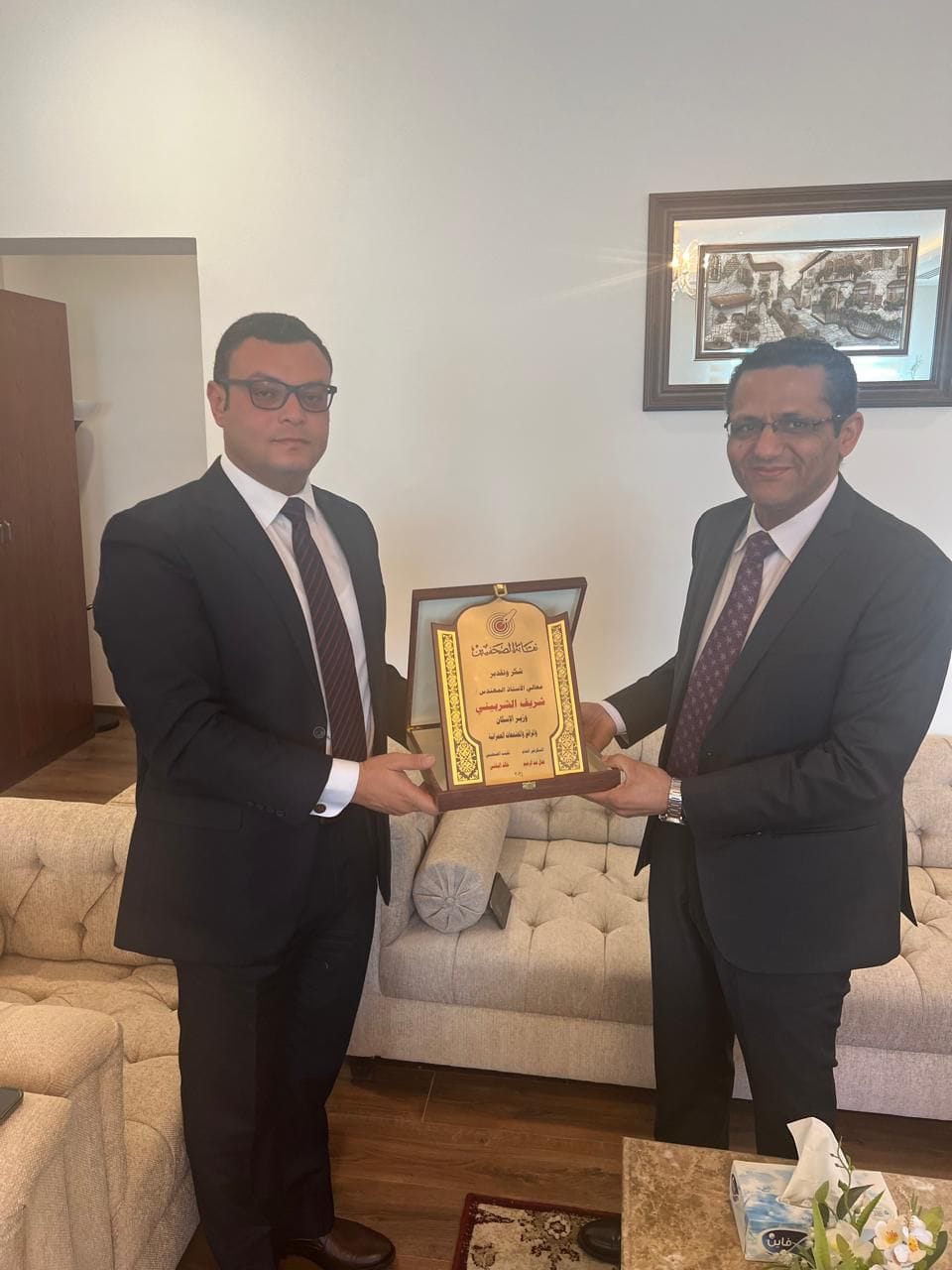 وقدم نقيب الصحفيين، درع تكريم للمهندس شريف الشربيني، وزير الإسكان والمرافق والمجتمعات العمرانية، تقديراً لجهوده الكبيرة والمتميزة منذ توليه حقيبة الإسكان.