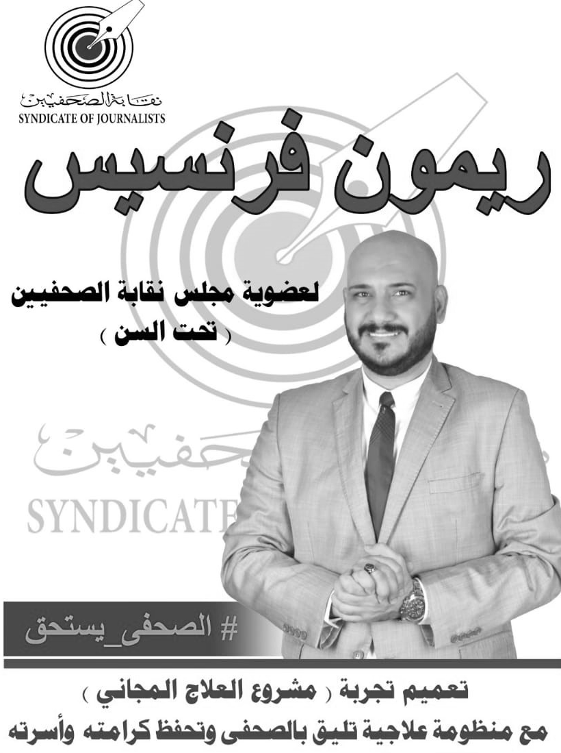 تحت شعار "خدمات على أرض الواقع" أعلن الصحفي ريمون فرنسيس عن برنامجه الانتخابي وذلك قبل أيام من انتخابات التجديد النصفي لنقابة الصحفيين المقرر إجراؤها في 3 مارس القادم.