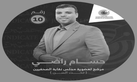 تحت شعار "عطاء بلا حدود ودعم غير مشروط" أعلن حسام راضي، المرشح لعضوية مجلس نقابة الصحفيين (تحت السن)، برنامجه الانتخابي.