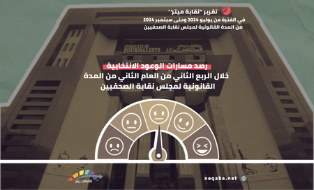 رصد فريق عمل موقع "نقابة ميتر" ووثق مدى تحقق الوعود الانتخابية التي قطعها نقيب الصحفيين خالد البلشي، وذلك خلال الفترة من أول يوليو وحتى نهاية سبتمبر 2024. وقد تم ذلك من خلال رصد القرارات والتحركات والتصريحات الرسمية للنقيب المنشورة على الموقع الرسمي للنقابة وصفحاتها على مواقع التواصل الاجتماعي، بالإضافة إلى ما نُشر في المواقع الإخبارية المختلفة، فضلاً عن التواصل المباشر معه.