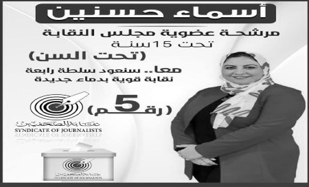 ودعت حسنين، الجمعية العمومية لاختيار من يحقق مكتسباتها التي ضاعت خلال السنوات الماضية، وأن يختاروا المرشح القادر على الدفاع عن حقوقهم، والقادر على إعادة سلطة وكرامة الصحفي من جديد.. نقابة ميتر، حاور أسماء حسنين، وكان ذلك أبرز ما طرحته:
